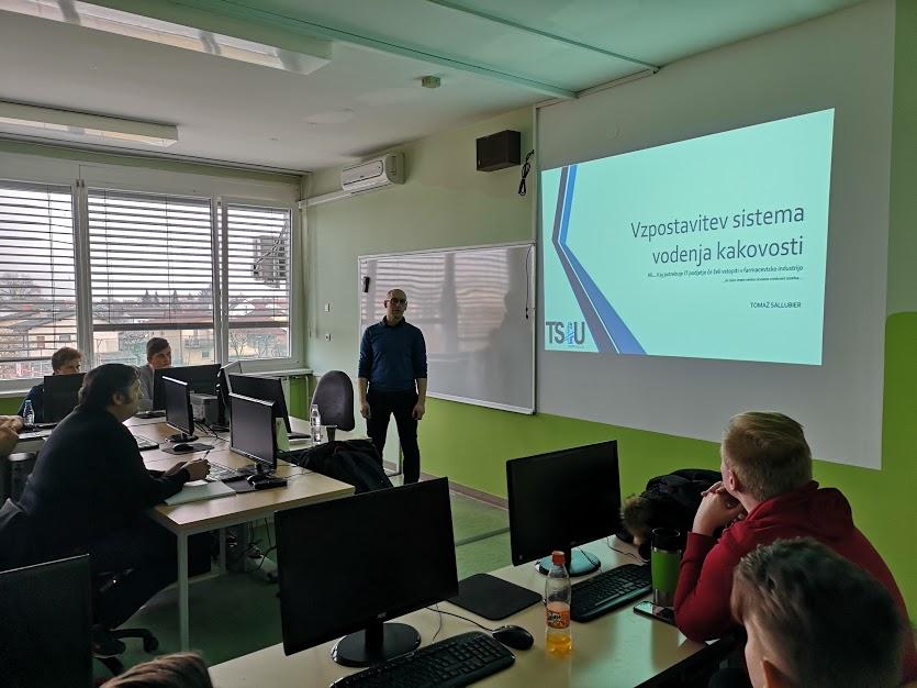 Pri študentih drugega letnika smer informatika je gostoval Tomaž Sallubier in nam predaval o pomenu kakovosti s stališča IT sistemov. Izpostavil je farmacevtsko industrijo, kjer so zahteve glede kakovosti zelo visoke, vendar z določeno mero truda dosegljive. V razpravi po predavanju je bilo povedano, da bodo verjetno tudi druge branže čez nekaj časa uveljavile višje standarde glede kakovosti. Za študente je velikega pomena zavedanje glede kakovosti v IT, da bodo lažje prodrli s svojimi idejami in produkti v podjetja z visokimi kakovostnimi standardi.